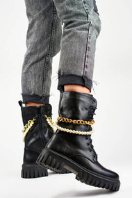 Eleganckie czarne botki damskie z ozdobnym zapięciem