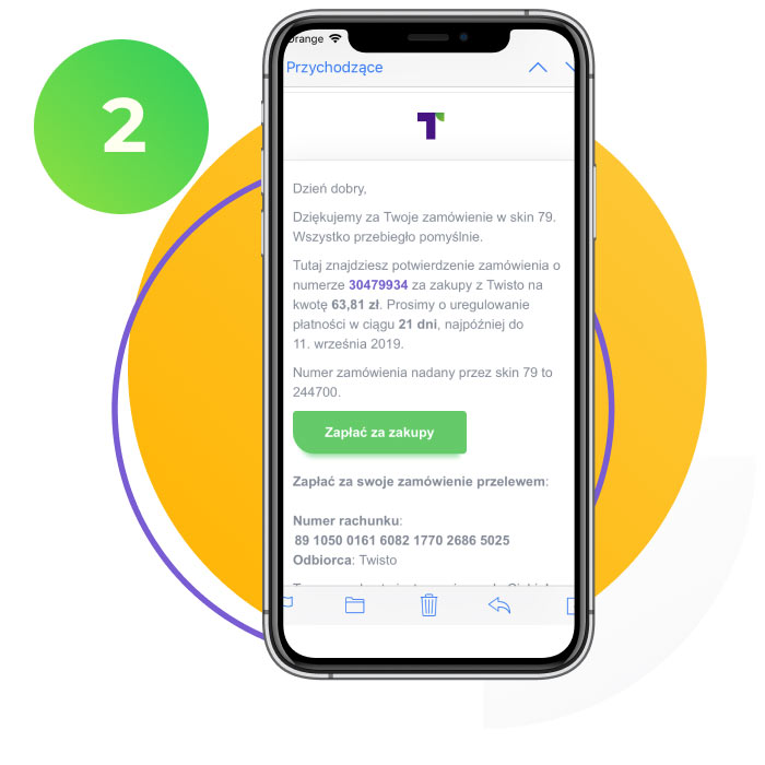 Twisto zapłaci za Twoje zakupy, a dalszą instrukcję znajdziesz w swojej skrzynce mailowej.