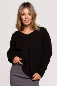 Sweter z dekoltem w serek - czarny